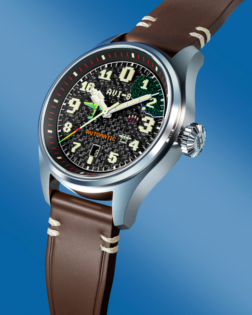 Dial: 3D pixelated dial inspired by Capcom 1942 and Swiss luminous markers