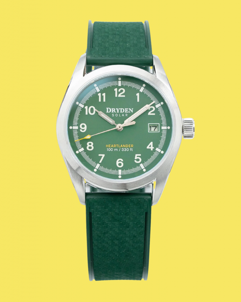 Dryden’s latest release fits perfectly into that trend, combining the timeless appeal of a field watch with the practicality of solar technology. Meet the new Dryden Heartlander Solar collection. Launched by micro-brand Dryden Watch Co., located in Kansas City, the line brings crisp field-watch sensibility into a modern, eco-minded world.