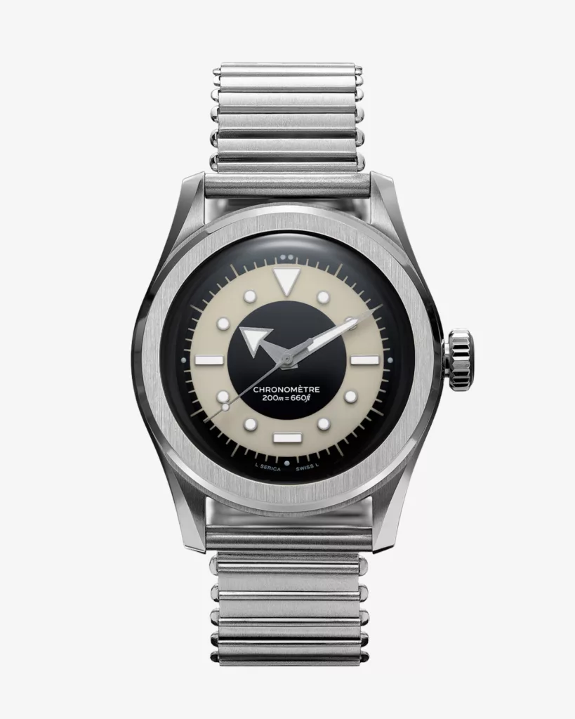 The stainless steel case features Serica’s signature twisted lugs, finished with alternating brushed and polished surfaces that elegantly catch the light.